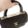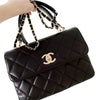 The Chanel Trendy CC small flap bag is half a briefcase and a great everyday bag. This bag can be worn on the arm or shoulder and features magnificent quilted lambskin leather and gorgeous shining gold-tone hardware. It has a metal Chanel metal plate on top and a shiny CC turn-lock to close it. Three big compartments on the inside are ideal for carrying paperwork and other daily necessities. You'll want to keep this bag in your collection for a long time!