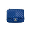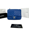 Square Flap Mini Caviar Chevron Quilted Blue SHW