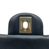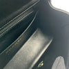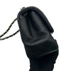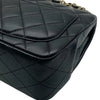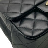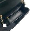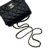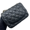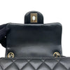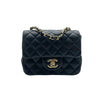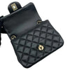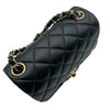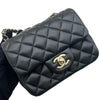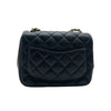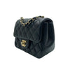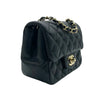 This is an authentic Chanel Square Flap Mini Lambskin Quilted in Black. This elegant bag is crafted from luxurious black diamond-quilted lambskin leather. It features a waist-length, light gold chain-link strap woven with leather and a light gold Chanel CC turn lock. The front flap opens to a black leather interior, complete with zipper and patch pockets.