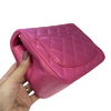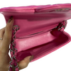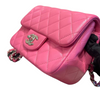 This Chanel Square Mini Pink Flap Bag in Lambskin Leather is such a delicious treat in a knockout shade. Don’t underestimate a mini- this little one can handle a wallet and your phone. In true Chanel fashion, you will have some room to stash the essentials without feeling fussy. The interior flat pocket and zipped pocket have you covered, and the cute little flat pocket on the back is a great spot to store something you need on hand.