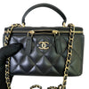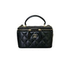 Top Handle Vanity Case with Chain Small Lambskin Black GHW