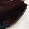 This gorgeous Chanel Small Vintage Double Flap Bag in black is crafted from quilted lambskin leather and features a woven strap, an exterior back slip pocket, and gold-tone hardware. Its double flap and frontal CC turn-lock closure opens to a red leather interior. Get this timeless classic, perfect for a shopper who appreciates a vintage leather piece!