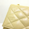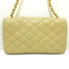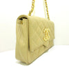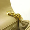 This Vintage Chanel shoulder bag is made from soft lambskin leather in beige and features a gold-toned leather-threaded chain-link shoulder strap, an embossed large Chanel CC logo on the flap.