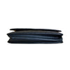 This Caviar Wallet on Chain features a black caviar quilted leather body, a leather woven silver-tone chain strap, a front flap with a snap closure, and interior zip and slip pockets.