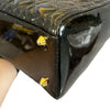 This is an authentic Christian Dior Lady Dior Large Patent in Black. This chic tote is made of patent leather and features sturdy top handles, an optional shoulder strap, and polished gold hardware with Dior initials charms hanging for a stylish touch. The top flap opens to fabric interior with a zipper pocket.