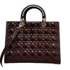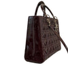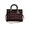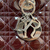 This is an authentic Christian Dior Lady Dior Large Patent Cannage in Cherry. This chic tote is crafted of geometric quilted patent leather. The bag features strong top handles and polished silver hardware including a Dior initial charm. The top zipper opens to a Dior jacquard fabric interior with a zipper pocket.