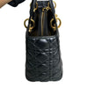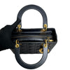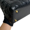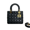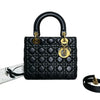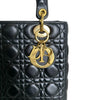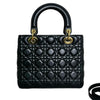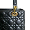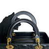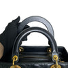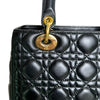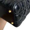 This is an authentic Christian Dior Lady Dior Medium Lambskin Cannage in Black. This tote is crafted from black lambskin leather. It features leather top handles, an optional shoulder strap, and polished gold hardware. The top zipper reveals a red Dior monogram jacquard fabric interior with a zip pocket.
