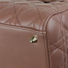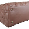 This is an authentic Christian Dior Lady Dior Medium Lambskin Cannage in Dark Beige. This super-chic tote is crafted of geometric quilted lambskin leather in beige. The bag features sturdy leather top handles and a shoulder strap, with polished gold hardware including hanging Dior initials logo charms. The top zipper opens the bag to a fabric interior with zipper and patch pockets.