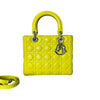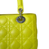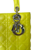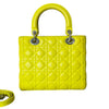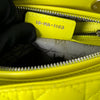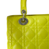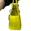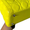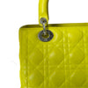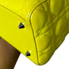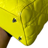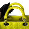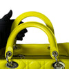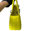 This is an authentic Christian Dior Lady Dior Medium Lambskin in Yellow. This bag is made of lambskin quilted leather. This handbag features leather top handles, an optional shoulder strap, and silver-toned hardware including the classic Dior initials logo charms. The top zipper opens to a fabric interior with zipper and patch pockets.