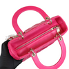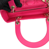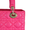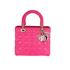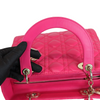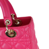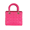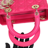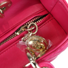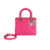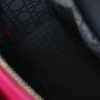 The Lady Dior bag comes in a beautiful Pink color. It features gold tone hardware and a top zipper that opens to a classy interior in grey Dior monogram jacquard fabric with a zip pocket. This classic bag can be used throughout the day but is perfect for your evening socials.