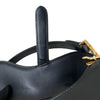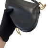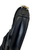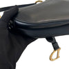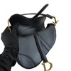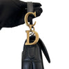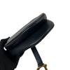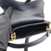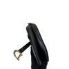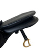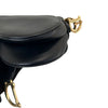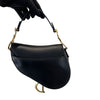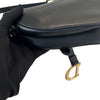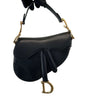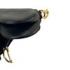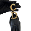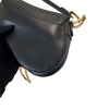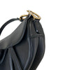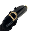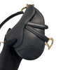 This is an authentic Christian Dior Saddle Bag Mini Calfskin in Black. This bag showcases a saddle bag design with a short leather shoulder strap and an extra shoulder strap. The handle features a prominent hanging Dior "D" charm. The interior of the bag is a black microfiber textile.