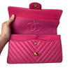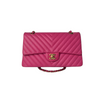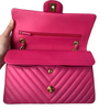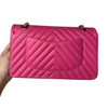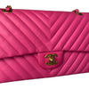 Why embrace trends when you can be a timeless classic? This Chanel Classic Chevron Double Flap will certainly meet the classic mark. This beauty is crafted in chevron-quilted bright fuchsia pink lambskin leather featuring the CC turn-lock in gold-tone hardware, a smile pocket on the back, and a leather interlaced shoulder strap that can be worn as a single or double strap. This bag features a spacious interior as well as two front pockets and a large main compartment to ensure all of your essentials stay neat and tidy. This sought-after beauty won't last long so don't miss your chance to own her.