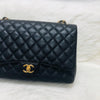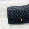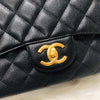 Chanel Classic Double Flap Caviar Leather Maxi handbag is guaranteed to be 100% Authentic. Make a statement with this classic bag in a killer colour and hardware combo. Black and gold. Caviar leather makes this bag a durable piece. Get this bag in amazing condition for a fraction of retail price.