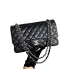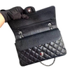 This Chanel Classic Medium Double Flap bag is crafted in diamond-quilted black caviar leather featuring a CC turn-lock and chain in silver hardware.