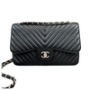 Classic Flap Jumbo Caviar Black Chevron SHW