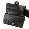 This classic Chanel double flap medium lambskin beauty is crafted in diamond-quilted black lambskin leather featuring hardware in silver. This sought-after beauty won't last long so don't miss your chance to own her.