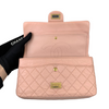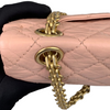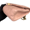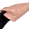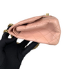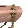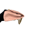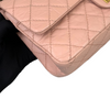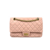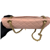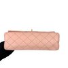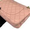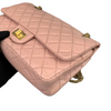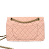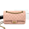 This Chanel Reissue double flap bag is crafted of diamond quilted crinckled Calfskin leather in pink. It features a gold toned hardware chain shoulder strap and a matching rectangular turn lock. Stand out and turn heads with this pink Chanel Reissue bag.