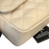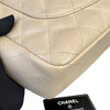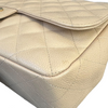 This Chanel Classic Jumbo Flap is as Iconic as a bag can get. It features the durable diamond-quilted Caviar Leather adorned with a silver hardware combo. Rare to find in white. The interior is the perfect size to fit all of your daily needs and essentials with one large compartment and two smaller pockets.