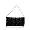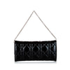 Dior Cannage Patent Leather Chain Flap Black. This shoulder bag features a cannage patent leather body, a silver-tone shoulder chain, a front flap with a magnetic closure, and an interior slip pocket.