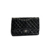 The patent leather exterior is stain free and has retained its structure and form with some softening to the material. Tiny hairline scratches can be found on hardware and a minor cracked area on the leather threaded in the chain. Hairline scratches can be found on the lambskin interior.