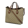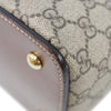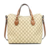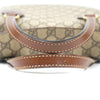 This Gucci shoulder bag features a canvas body, flat shoulder straps, a foldover top, and interior zip and slip pockets.