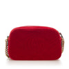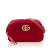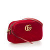 The GG?ÿMarmont Crossbody bag features a quilted velvet body, a curb chain strap, a top zip closure, and an interior slip pocket.