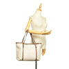 The Nice tote bag features a coated canvas body with leather trim, flat leather straps, an open top, and interior zip and slip pockets.