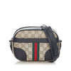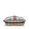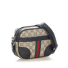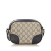 Gucci GG Supreme Web Crossbody bag Brown. This crossbody bag features a PVC body, a flat leather strap, and a top zip closure.