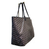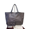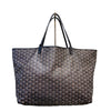 This is an authentic Goyard Goyardine Saint Louis GM Canvas in Black. This chic tote is made from coated canvas and adorned with the iconic Goyard chevron monogram in black. It boasts black leather handles and trim, while the roomy interior is lined with natural linen and includes a matching removable pouch.