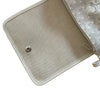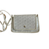 This is an authentic Goyard Plumet Wallet Clutch Goyardine Canvas in White. This elegant shoulder bag is made from coated canvas adorned with the timeless Goyard chevron monogram in white. It can be worn as a crossbody or a clutch and features a detachable leather strap, white leather trim, and silver hardware. The flap reveals a beige interior.
