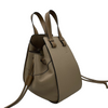 The Loewe Grained Calfskin Small Hammock Shoulder Bag embodies chic luxury and elegance in its bedge grained calfskin leather. This handbag features a unique one-piece hammock design with leather top handles, a small zipper pocket, brass zippers that help expand the length of the bag, and an optional adjustable shoulder strap for crossbody wear.
