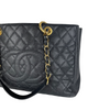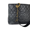 The Chanel Grand Shopping Tote is crafted from classic caviar leather with diamond quilting. It features leather-threaded polished gold chain-link shoulder straps with shoulder pads that accentuates the bblack shade of the bag. This bag’s organized storage system makes it perfect for work, shopping, and even your day or night socials. Be practical AND stylish in Chanel!