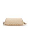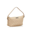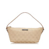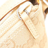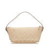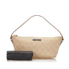Gucci GG Boat baguette brown a classy handbag that features a canvas body with leather trim, a flat leather handle, and a top zip closure.
