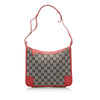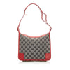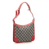 This Gucci GG Canvas Shoulder Bag features a canvas body with leather trim, a flat leather strap, a top zip closure, and an interior zip pocket.