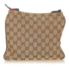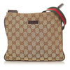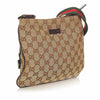 Gucci GG Canvas Web Crossbody Bag Brown. This crossbody bag features a canvas body with leather trim, an adjustable flat web strap, a top zip closure, and an interior zip pocket.