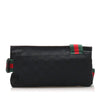This Gucci crossbody bag features a canvas body, an adjustable flat strap, a top zip closure, and an interior zip pocket. Its chic black color with its unmistakably Gucci strap makes for a striking piece that you can bring with your travels.