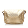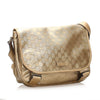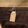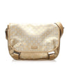 This crossbody bag features a coated canvas body with leather trim, a flat adjustable nylon strap, a top flap with dual buckle closures, and interior zip and slip pockets.