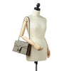 This Dionysus features a coated canvas body with suede leather trim, silver-tone curb chain straps, a top flap with push lock closure, and an interior zip compartment.