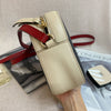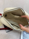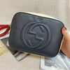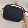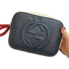 The chic crossbody Gucci Soho Disco bag is crafted from pebbled calfskin leather in tri coloured leather, with a prominent Gucci GG logo stitched on the front. It has an adjustable leather shoulder strap with polished light gold hardware and a gold-knobbed leather tassel zipper. Set yourself apart from the crowd with this stylish, everyday bag only from Gucci!