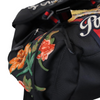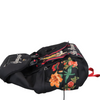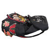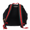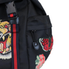 This is an authentic Gucci Techno Canvas Embroidered Double Buckle Backpack in Black. This backpack is crafted of black durable canvas fabric with various colorful patches including flowers and a tiger head. The bag features a top flap with dual buckle closures, front zip pocket, large zippered side compartments and padded adjustable nylon shoulder straps. The flap opens with a drawstring to a spacious black fabric interior with a zipper pocket.