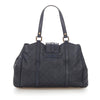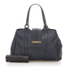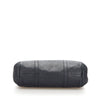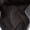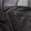 This tote bag features an embossed leather body, flat leather handles, a top strap with magnetic button closure, and an interior zip pocket.