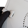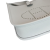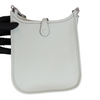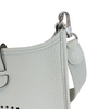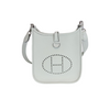 This is an authentic Hermes Evelyn TPM in Gris Neve Taurillon leather. This stylish small messenger bag is crafted of textured Taurillon Clemence calfskin leather. It features its signature perforated H on the front. The top of the bag opens with a crossover strap to a suede interior. This crossbody is also light and comfortable to wear.