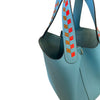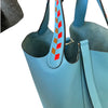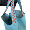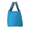 This is an authentic Hermes Picotin Lock 18 PM Epsom Leather in Blue. This unique bucket bag is made of epsom leather. The braided handles feature an inlay designs in leather in red and brown. The top strap unlocks and opens to a spacious suede interior with a grained leather base. This classically elegant tote is great for your everyday escapades with the Hermes sophistication!
