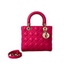 The Lady Dior bag comes in a beautiful Pink pop of colour. It features Gold hardware and a top inner flap that opens to a classy interior of Dior monogram jacquard fabric with a zip pocket. This classic bag can be used throughout the day but is perfect for your evening socials.