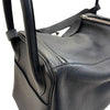 This Hermes Lindy 30 Shoulder Bag in a Black exterior is constructed from soft Clemence leather and offers a unique design. The handles are located on the small side, which fold the faces of the bag, giving it its oh-so atypical shape and hugs the curves of the body.