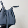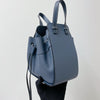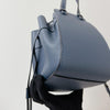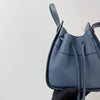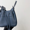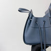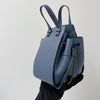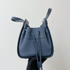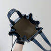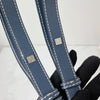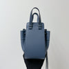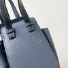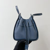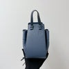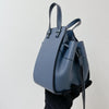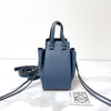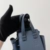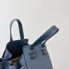 The Loewe Hammock Mini Dark Blue Shoulder Bag embodies chic luxury and elegance in its soft, dark blue-grained calfskin leather. This handbag features a unique one-piece hammock design with leather top handles, a small zipper pocket, brass zippers that help expand the length of the bag, and an optional adjustable shoulder strap for crossbody wear.