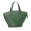 The Saint Jacques features an epi leather body, flat handles, a top zip closure, and an interior slip pocket.