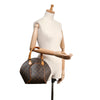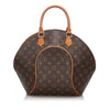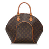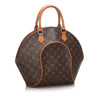 The Monogram Ellipse MM is a chic tote that is crafted of traditional Louis Vuitton monogram toile coated canvas. The bag features vachetta cowhide leather piping and rolled top handles, with brass hardware. The wrap-around zippers open the bag to an interior of cocoa brown fabric, with a slip pocket. This tote is ideal for everyday use.