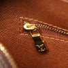 It carries an AB condition rating. Bag has kept its shape and is in great condition overall. The leather has lost some of its color lush. The hardware has lost some of its luster, with the zipper is showing some scratches. The interior lining has lost its sheen and shows scratches. Vachetta leather has darkened with time.