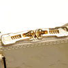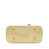 This elegant Louis Vuitton Vernis Alma PM White features a vernis leather body, rolled handles, a clochette, gold-tone hardware, a top zip closure, and interior slip pockets.